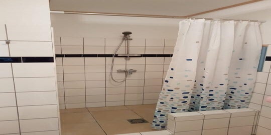Deze gîte is voorzien van een fijne en ruime badkamer met toilet, en daarnaast is er nog een apart toilet voor extra gemak.